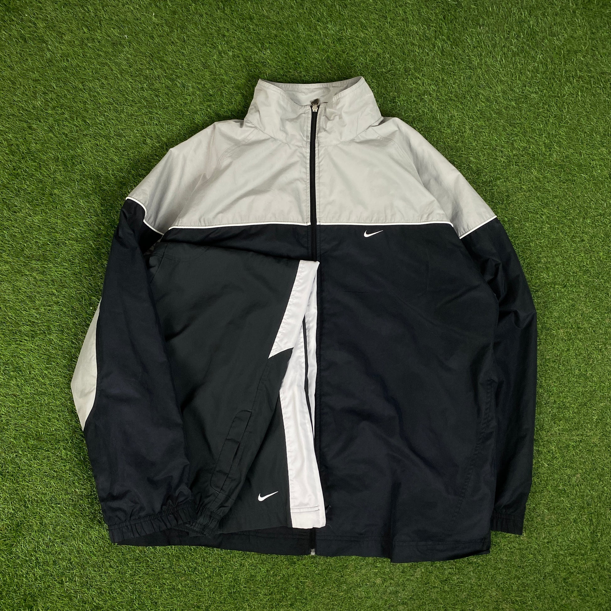 00s Nike Piping Tracksuit Set Windbreaker + Joggers Grey XXL