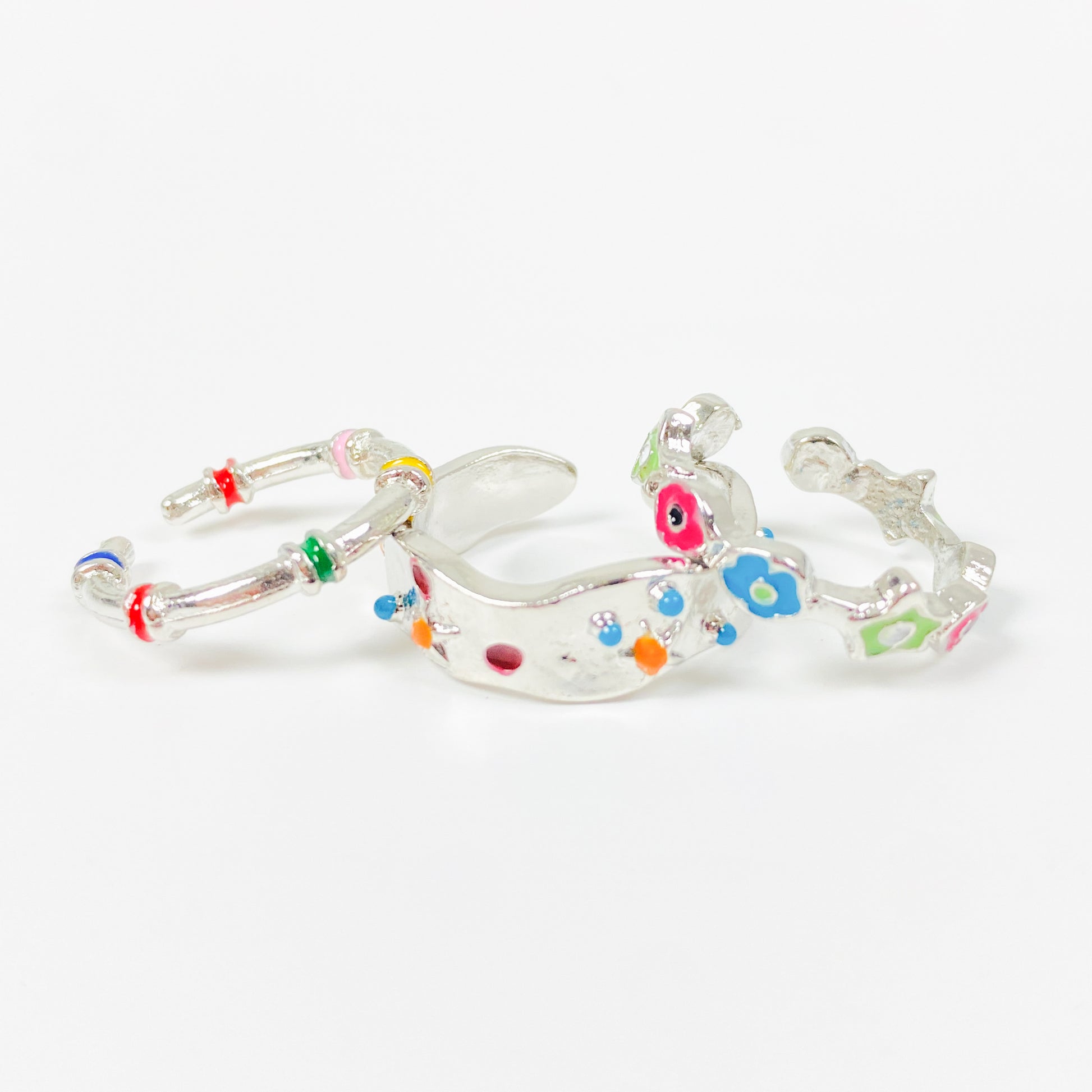 Flower Stacking Ring Set Silver