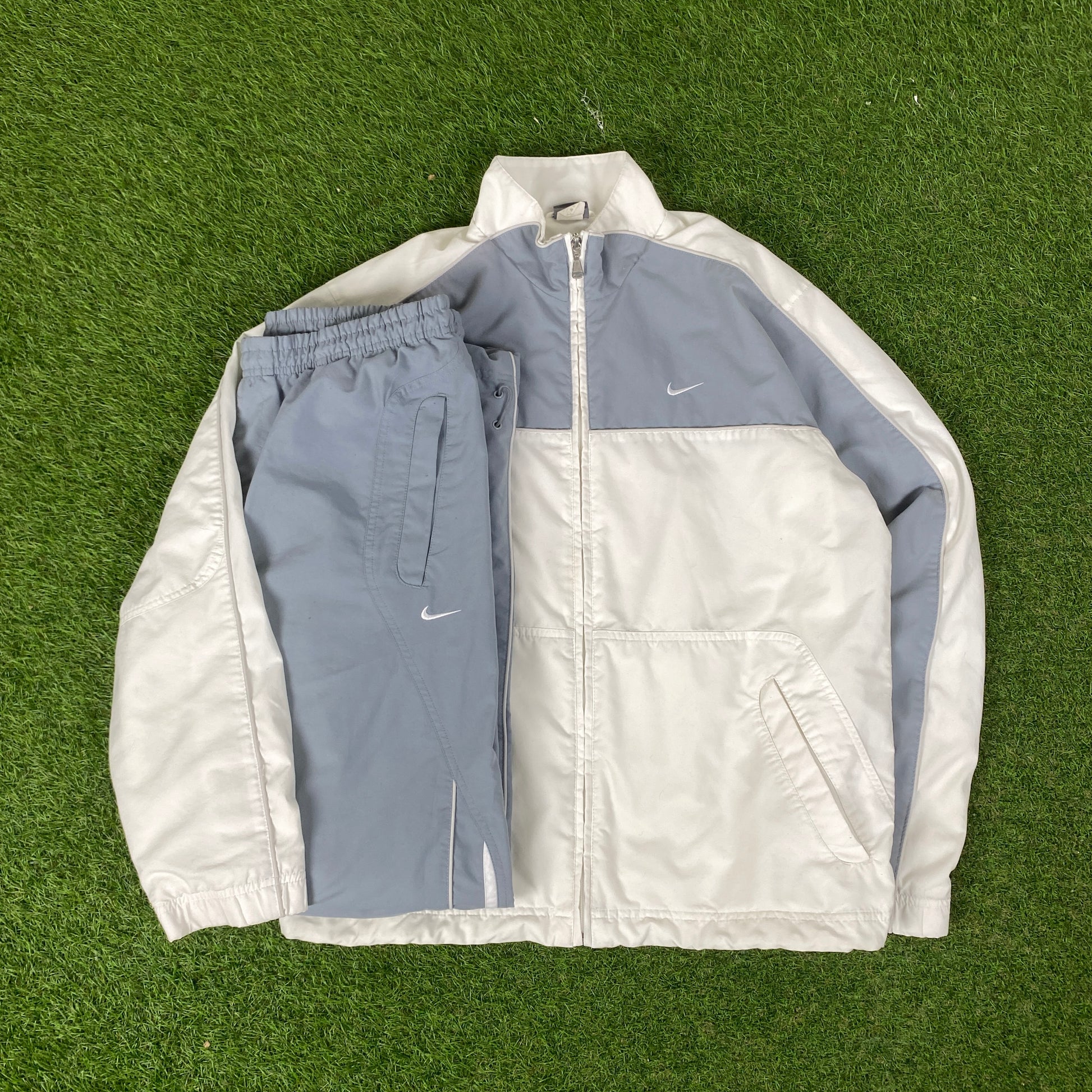 00s Nike Piping Windbreaker Jacket + Joggers Set White Medium