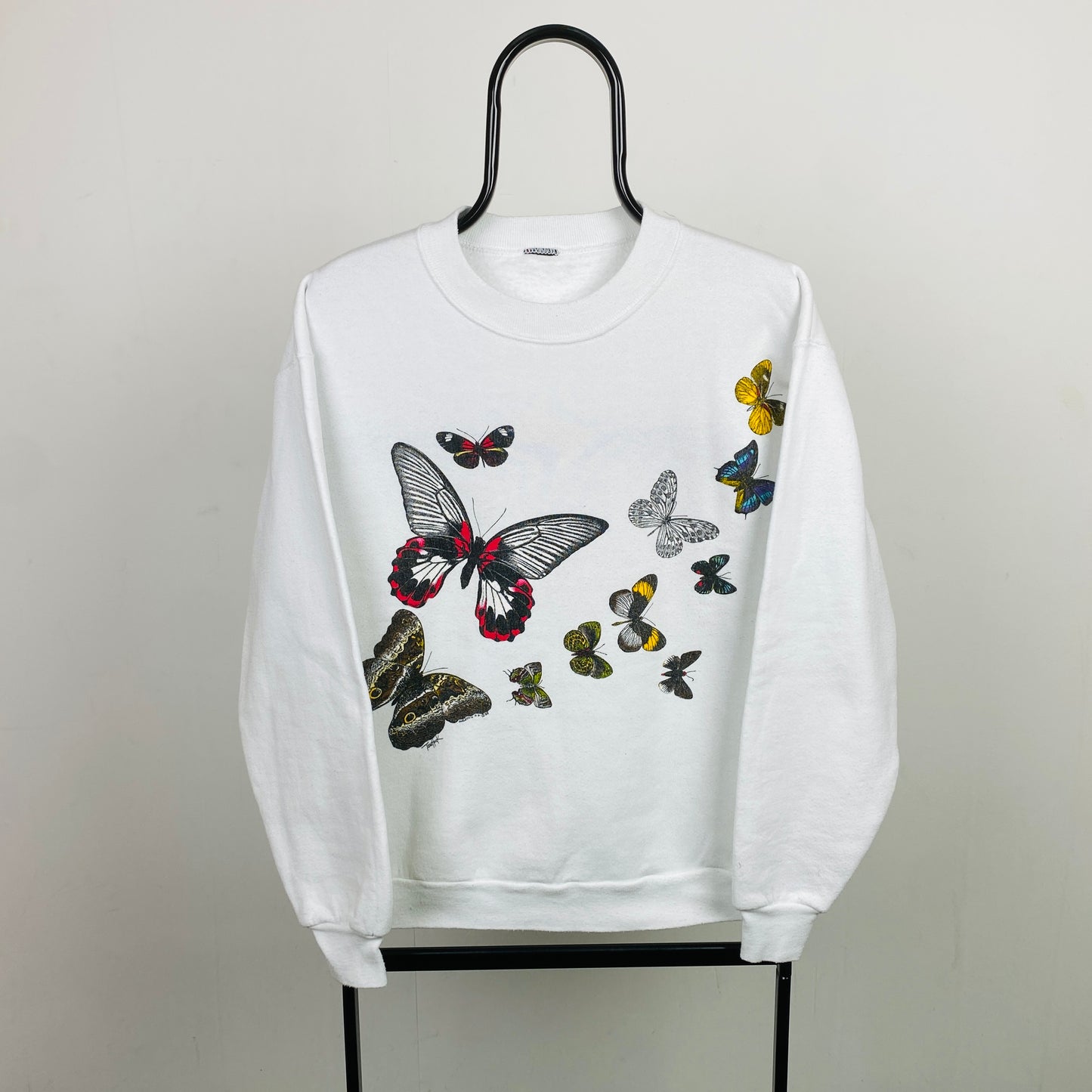 Retro 90s Butterfly Sweatshirt White Small