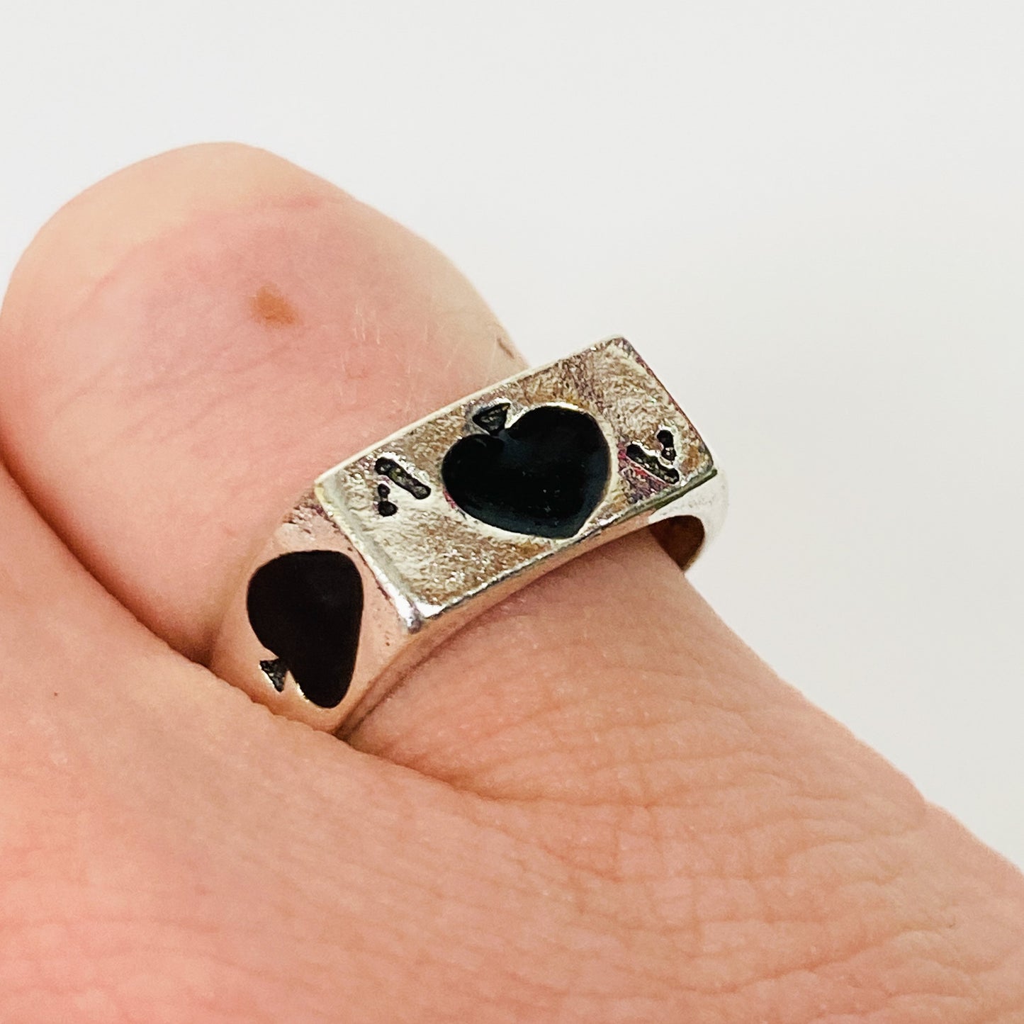 Retro Vintage Playing Card Ring Silver